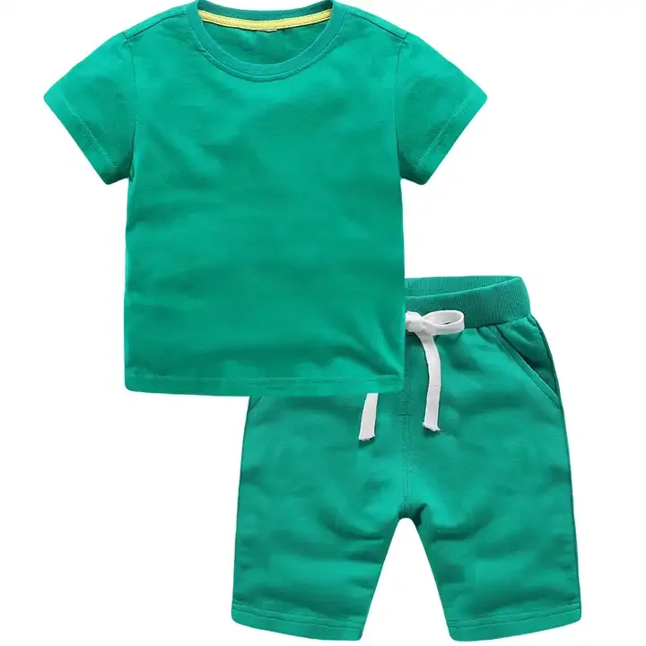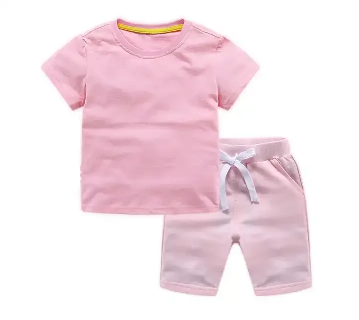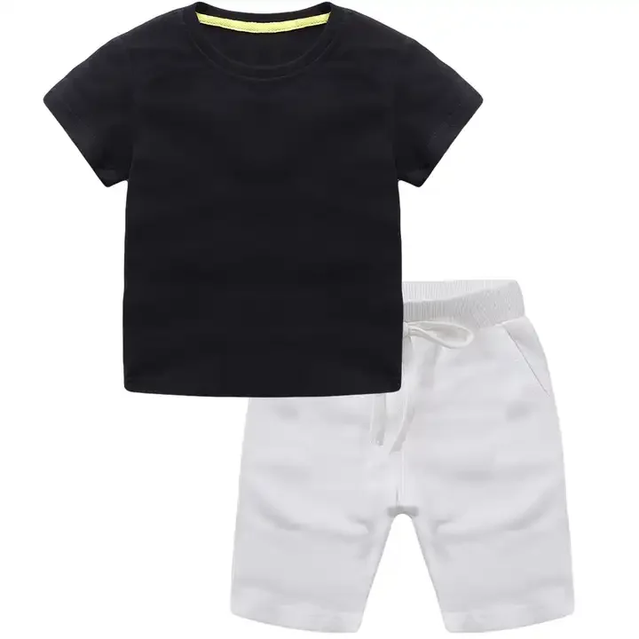 Customizable Summer Wear Customized 100% Cotton Boys Shorts Sets Blank Plain Kids Clothing Two Piece Set